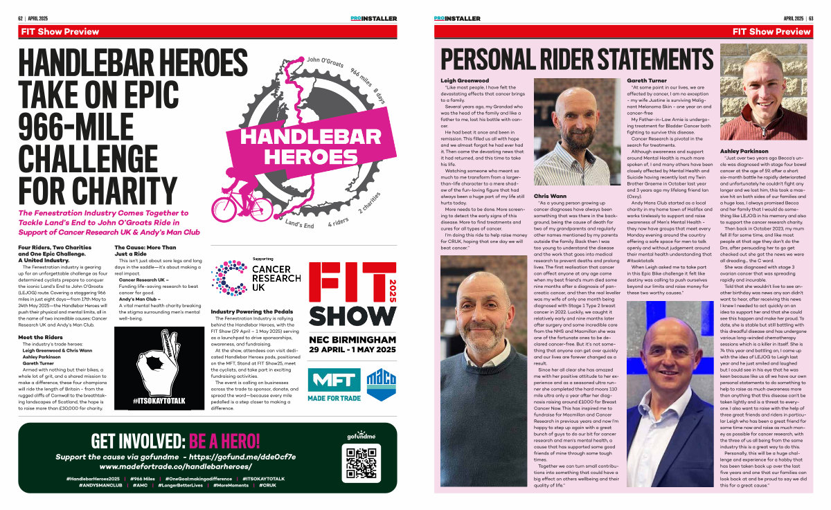 The Fenestration industry is gearing up for an unforgettable challenge as four determined cyclists prepare to conquer the iconic Land’ s End to John O’ Groats( LEJOG) route. Covering a staggering 966 miles in just eight days— from 17th May to 24th May 2025— the Handlebar Heroes will push their physical and mental limits, all in the name of two incredible causes: Cancer Research UK and Andy’ s Man Club.
