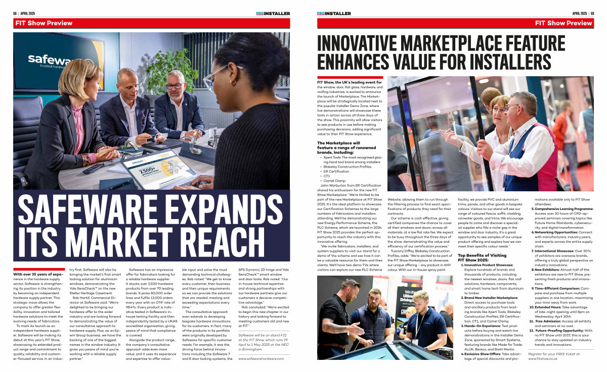 With over 35 years of experience in the hardware supply sector, Safeware is strengthening its position in the industry by becoming an independent hardware supply partner. This strategic move allows the company to offer greater flexibility, innovation and tailored hardware solutions to meet the evolving needs of fabricators. To mark its launch as an independent hardware supplier, Safeware will be making its debut at this year’ s FIT Show, showcasing its extended product range and commitment to quality, reliability and customer-focused service. In an industry |