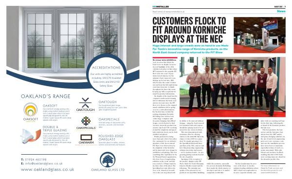 Widely promoted as being more than just a show but rather ‘ the community for our industry ’, attendees of the free-to-attend FIT Show were blown away by the simplicity of the Korniche and its innovative new design for installation and glazing . This was something duly capitalised on by the Wynyard-based organisation , who have been a longstanding exhibitor at the event , and this year created a 170sqm stand for the three days of the show . The SpeedBead not only allows the door to be ‘ Glazed in Seconds ’, but is also one step ahead with