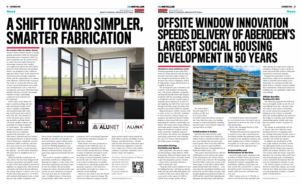 “ This project demonstrated how effective collaboration can be between the timber frame manufacturer, the window fabricator, and the main contractor. By integrating Eurocell’ s InSite system into our kits at the factory stage, we were able to deliver timber panels already fitted with windows- a key innovation that streamlined installation and reduced the need for follow-on trades. That brought significant programme benefits for CHAP and the Council while minimising site disruption and improving overall efficiency.”