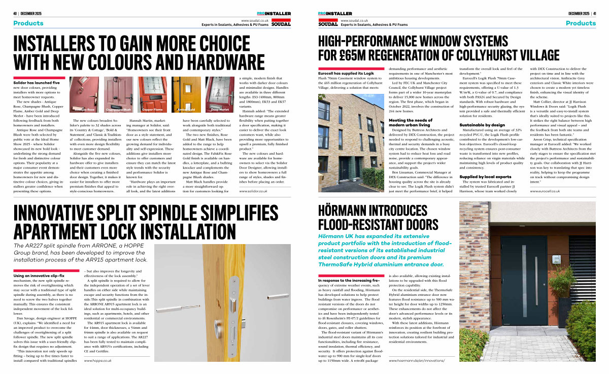 Hörmann UK has expanded its extensive product portfolio with the introduction of floodresistant versions of its established industrial steel construction doors and its premium ThermoSafe Hybrid aluminium entrance door. transform the overall look and feel of the development.” Eurocell’ s Logik Flush 70mm Casement system was specified to meet these requirements, offering a U-value of 1.3 W / m ² K, a G-value of 0.7, and compliance with both PAS24 and Secured by Design standards. With robust hardware and high-performance security glazing, the system provided a safe and thermally efficient solution for residents.