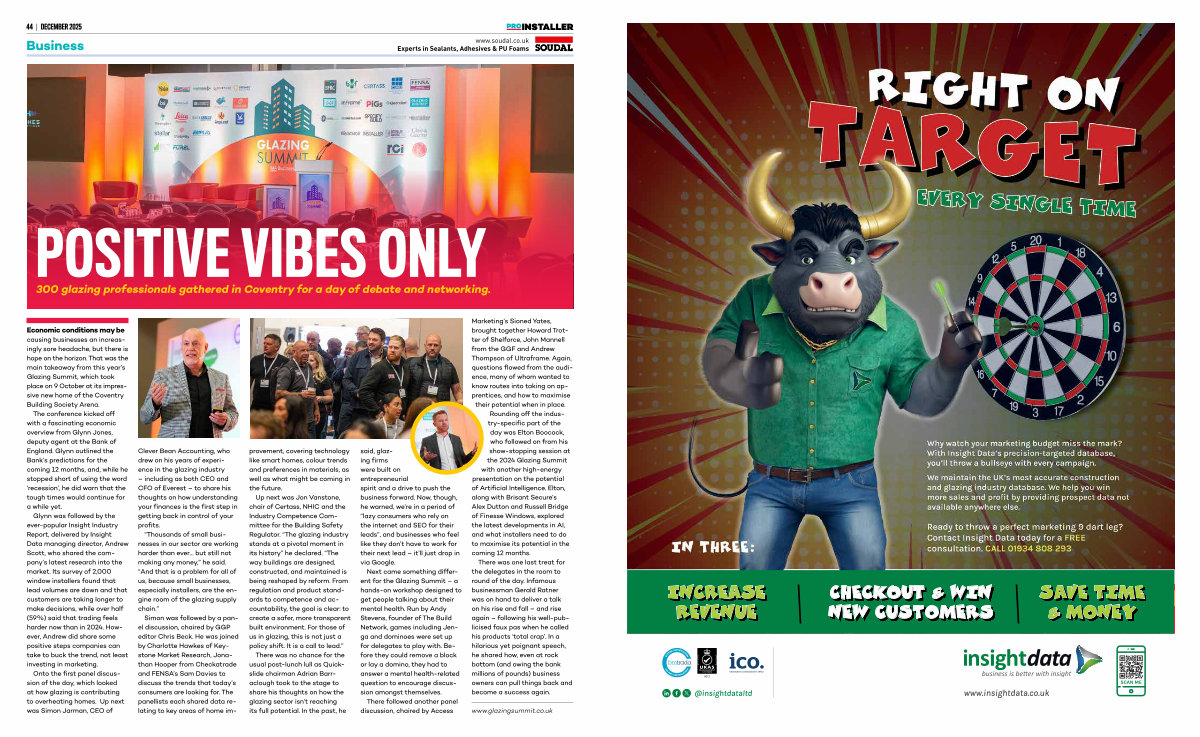 Economic conditions may be causing businesses an increasingly sore headache, but there is hope on the horizon. That was the main takeaway from this year’ s Glazing Summit, which took place on 9 October at its impressive new home of the Coventry Building Society Arena.