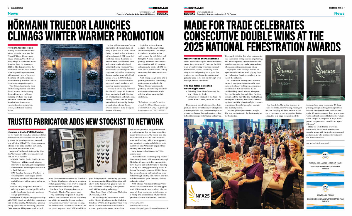 team and our trade customers. We keep pushing design and engineering forward because installers deserve products that make life easier, support them to win more work and look incredible for homeowners when the job is complete. A huge thank you to everyone who voted for us again this year.”