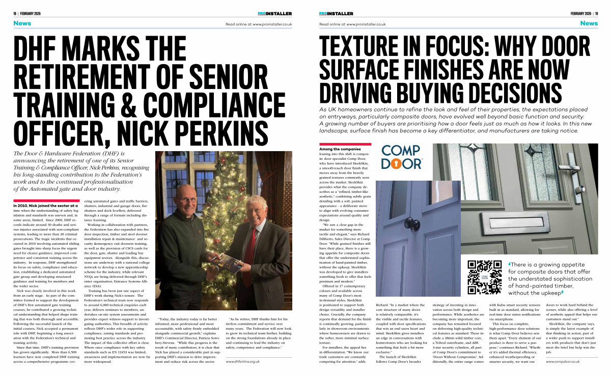 Offered in 17 contemporary colours and available across many of Comp Door’ s most in-demand styles, SleekSkin is positioned to support both design versatility and installer choice. Crucially, the company reports that demand for the finish is continually growing, particularly in showroom environments where homeowners are drawn to the softer, more minimal surface texture.
