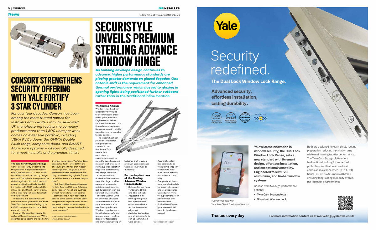 Nick Scott, Key Account Manager for Yale Door and Window Solutions, adds:“ Consort has all the qualities we look for in a long-term partner – technical know-how, dependable service, and a commitment to delivering the best experience for installers. We’ re pleased to be taking our relationship to the next level with this announcement.”