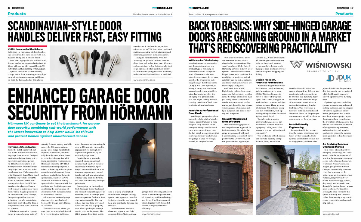 In a sector often shaped by emerging technology and visual trends, it is the quiet return of practical fundamentals that now seems to be shaping homeowner choices. Wisniowski’ s sidehinged garage doors haven’ t changed dramatically in recent years, but that may be the point. In an environment where purpose, longevity and easeof-use are increasingly valued, they stand as a reminder that thoughtful design doesn’ t always need to shout. For installers looking to offer solutions that speak reliability and usability rather than novelty, they remain a very competitive and compelling option.