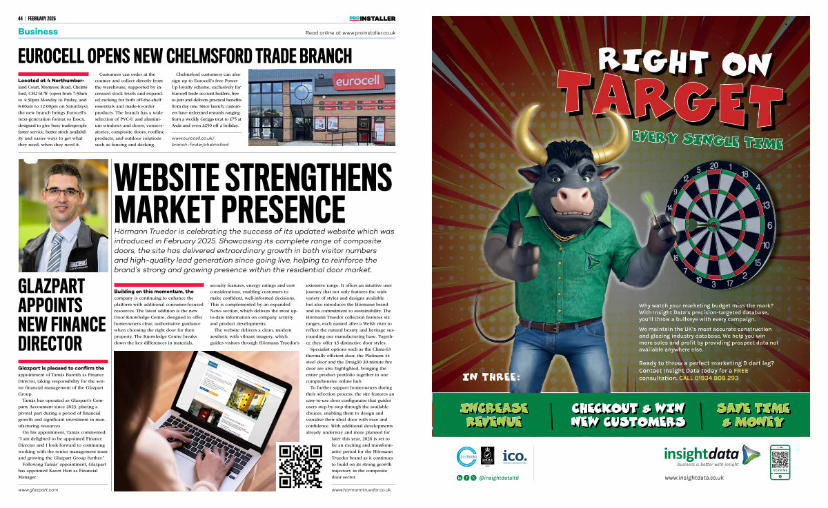 To further support homeowners during their selection process, the site features an easy-to-use door configurator that guides users step-by-step through the available choices, enabling them to design and visualise their ideal door with ease and confidence. With additional developments already underway and more planned for later this year, 2026 is set to be an exciting and transformative period for the Hörmann Truedor brand as it continues to build on its strong growth trajectory in the composite door sector.
