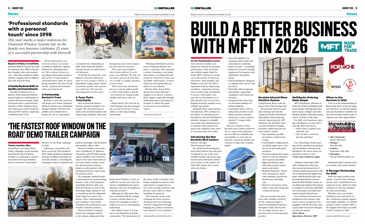 As the fenestration sector looks ahead to another year shaped by demand for premium performance, faster lead times and reliable supply, Made for Trade( MFT) continues to stand out as the partner of choice for fabricators, trade installers and builders across the UK. With a reputation built on engineering excellence, competitive pricing and an unwavering commitment to service, 2026 marks a pivotal time for the business as it fully launches not one, but two, flagship Korniche products set to redefine the market.