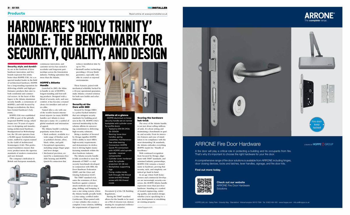 Security, style, and durability are at the forefront of door hardware innovation, and few brands represent this trinity better than HOPPE( UK). As a respected market leader in the field of architectural hardware, HOPPE has a long-standing reputation for delivering reliable and high-performance products that cater to both residential and commercial sectors. At the heart of this legacy is the Atlanta aluminium security handle, a cornerstone of HOPPE’ s, and with Secured by Design accreditation; the three have formed hardware’ s holy trinity …