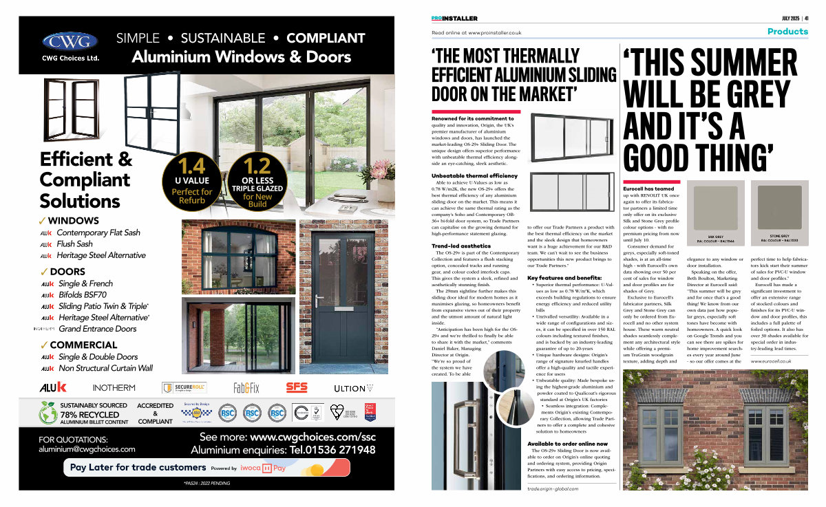 “ Anticipation has been high for the OS- 29 + and we’ re thrilled to finally be able to share it with the market,” comments Daniel Baker, Managing Director at Origin.“ We’ re so proud of the system we have created. To be able to offer our Trade Partners a product with the best thermal efficiency on the market and the sleek design that homeowners want is a huge achievement for our R & D team. We can’ t wait to see the business opportunities this new product brings to our Trade Partners.”