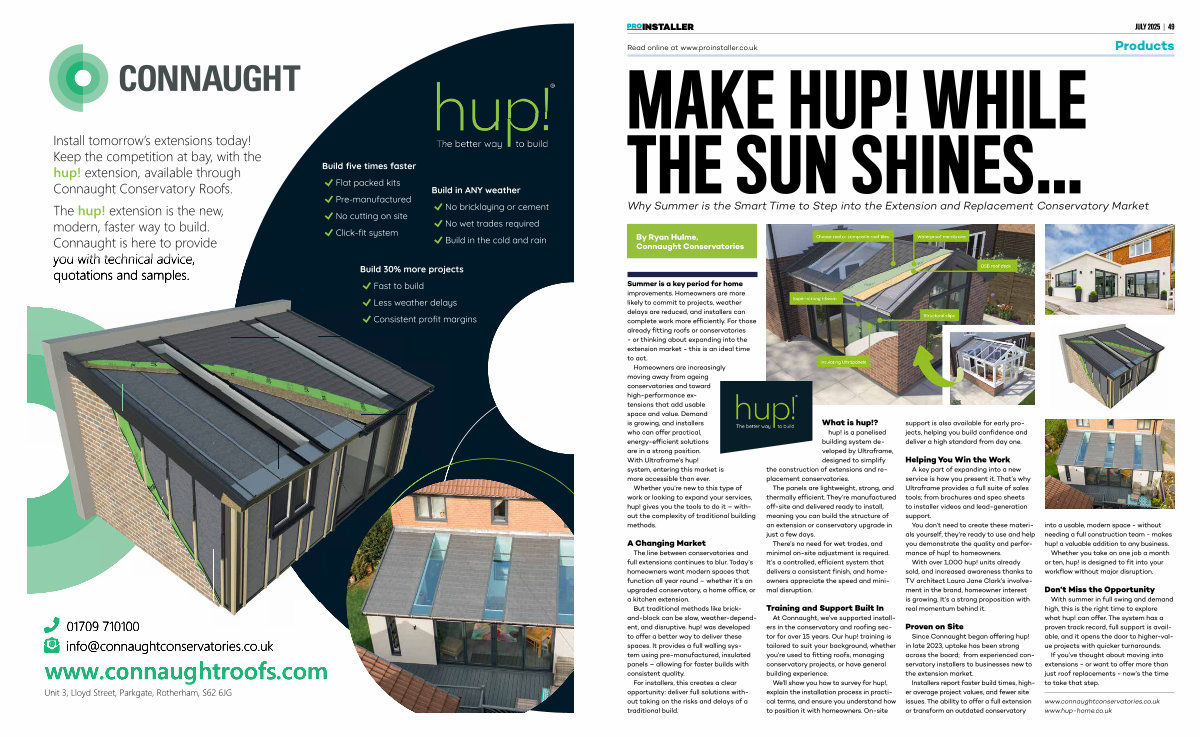 Since Connaught began offering hup! in late 2023, uptake has been strong across the board; from experienced conservatory installers to businesses new to the extension market.