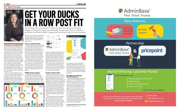 There was almost palpable excitement at this year ’ s FIT Show because we ’ ve all been starved of an industry exhibition for so long . It gives us all a renewed vigour to try something new and make changes that we perhaps should have made a long time ago . But for any new supplier , service , or product to work within your company you first need a solid foundation and clear understanding of where your installation business is now . The first port of call should be a new management system because gaps in admin and reporting can muddy the view of where your strengths , weaknesses , opportunities , and threats lie , and the value of having this information in order , shouldn ’ t be underestimated .