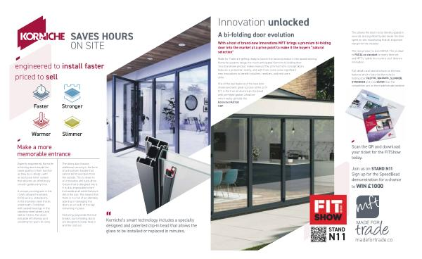 Made for Trade are getting ready to launch the second product in the award winning Korniche systems range , the much-anticipated Korniche bi-folding door . This brand-new product makes many of the 2019 Korniche concept doors features a production reality , and with them come some significant new innovations to benefit installers , resellers , and end users alike .