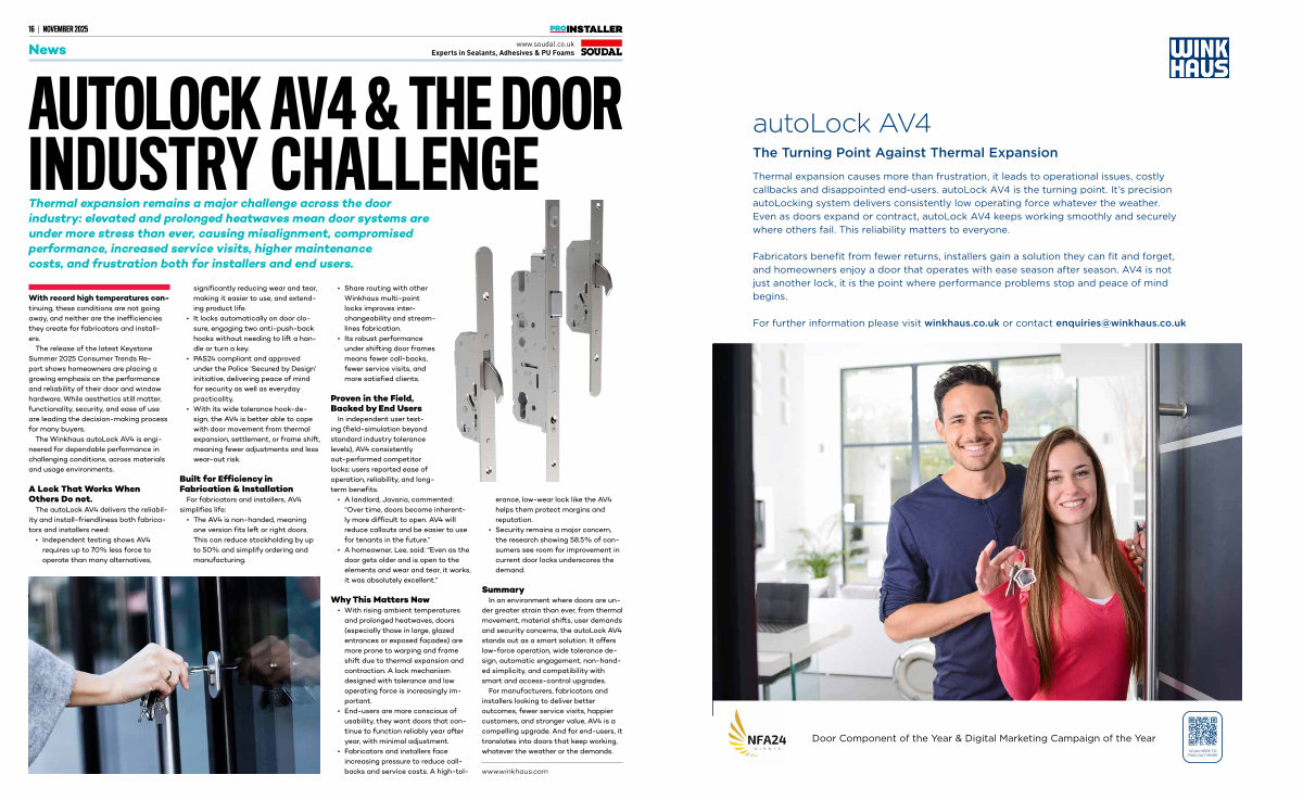 Fabricators benefit from fewer returns, installers gain a solution they can fit and forget, and homeowners enjoy a door that operates with ease season after season. AV4 is not just another lock, it is the point where performance problems stop and peace of mind begins.