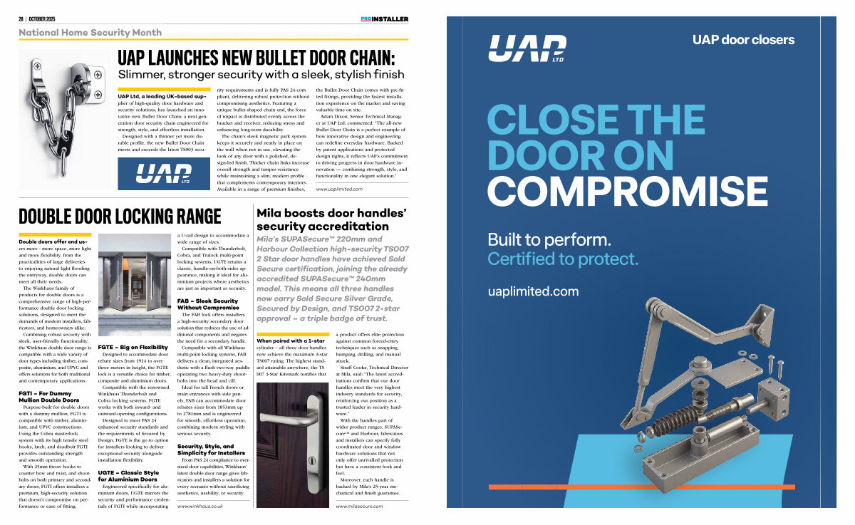 Adam Dixon, Senior Technical Manager at UAP Ltd, commented:“ The all-new Bullet Door Chain is a perfect example of how innovative design and engineering can redefine everyday hardware. Backed by patent applications and protected design rights, it reflects UAP’ s commitment to driving progress in door hardware innovation— combining strength, style, and functionality in one elegant solution.”