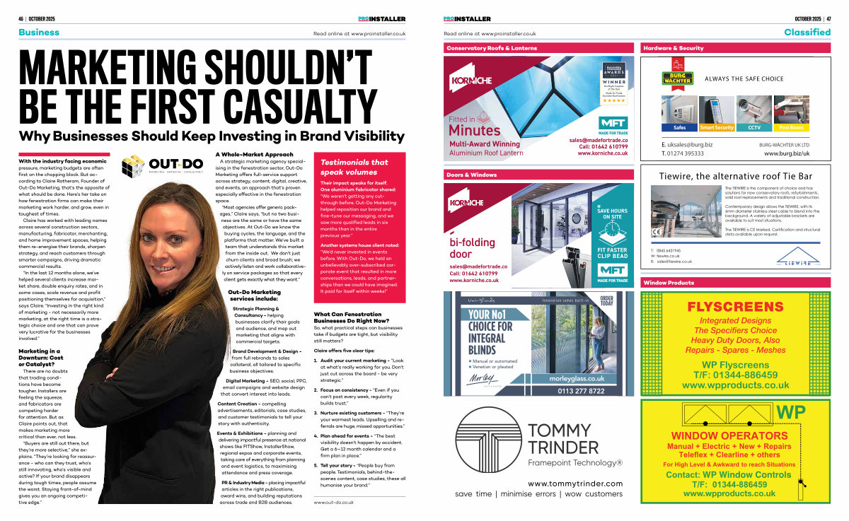 There are no doubts that trading conditions have become tougher. Installers are feeling the squeeze, and fabricators are competing harder for attention. But as Claire points out, that makes marketing more critical than ever, not less.