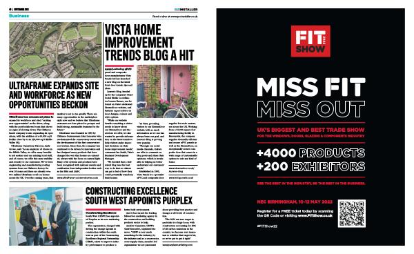 ULTRAFRAME EXPANDS SITE AND WORKFORCE AS NEW OPPORTUNITIES BECKON Ultraframe has announced plans to expand its workforce and cited “ exciting new opportunities ” as the driver , along with the post-lockdown boom that shows no signs of slowing down . The Clitheroe based company is also expanding its operations , with the addition of a 60,000 sq ft facility close by to its 350,000 sq ft Ribble Valley HQ .