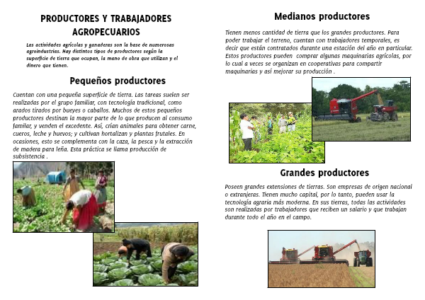 Tienen menos cantidad de tierra que los grandes productores. Para poder trabajar el terreno, cuentan con trabajadores temporales, es decir que están contratados durante una estación del año en particular. Estos productores pueden comprar algunas maquinarias agrícolas, por lo cual a veces se organizan en cooperativas para compartir maquinarias y así mejorar su producción .