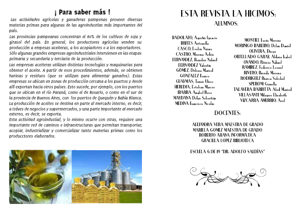 Las empresas aceiteras utilizan distintas tecnologías y maquinarias para obtener el aceite. A partir de esos procedimientos, además, se obtienen harinas y residuos (que se utilizan para alimentar ganados). Estas empresas se ubican en zonas de producción cercana a los puertos y desde allí exportan hacia otros países. Esto sucede, por ejemplo, con los puertos que se ubican en el río Paraná, como el de Rosario, o como en el sur de la provincia de Buenos Aires, con los puertos de Quequén y Bahía Blanca.