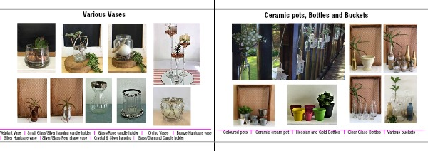Vetplant Vase I Small Glass/Silver hanging candle holder I Glass/Rope candle holder I Orchid Vases I Bronze Hurricane vase I Silver Hurricane vase I Silver/Glass Pear shape vase I Crystal & Silver hanging l Glass/Diamond Candle holder