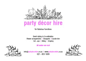 info@partydecorhire.co.za I www.partydecorhire.co.za