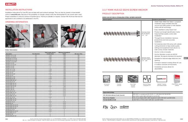 • Full stainless steel 316 screw with carbide cutting elements to help enable quality setting and exceptional load values in a wide variety of base materials . |