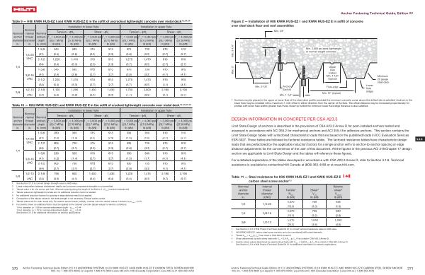 Table 11 — Steel resistance for Hilti KWIK HUS-EZ I and KWIK HUS-EZ E carbon steel screw anchor 1 , 2