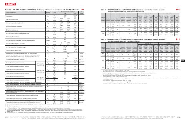 Table 13 — Hilti KWIK HUS-EZ I and KWIK HUS-EZ E carbon steel screw anchor factored resistance with concrete / pullout failure in uncracked concrete 1 , 2 , 3 , 4 , 5