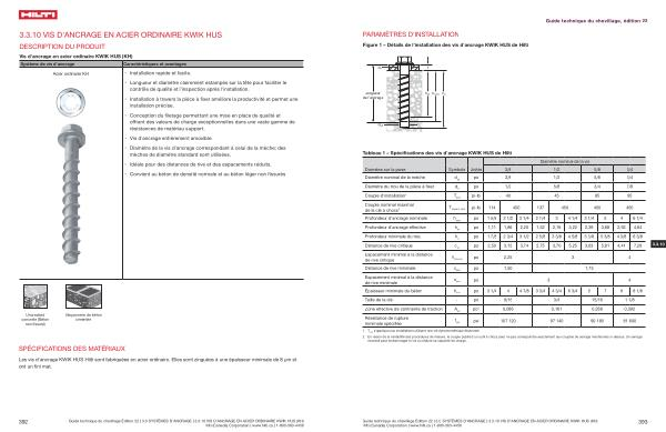 392 Guide technique du chevillage Édition 22 | 3.0 SYSTÈMES D ’ ANCRAGE | 3.3.10 VIS D ’ ANCRAGE EN ACIER ORDINAIRE KWIK HUS ( KH ) Hilti ( Canada ) Corporation | www . hilti . ca | 1-800-363-4458