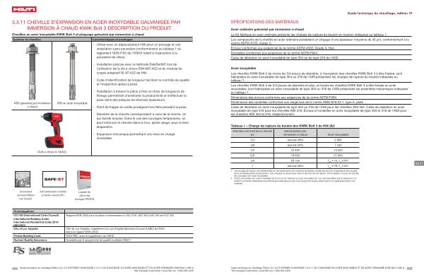 Guide technique du chevillage Édition 22 | 3.0 SYSTÈMES D ’ ANCRAGE | 3.3.11 VIS D ’ ANCRAGE EN ACIER INOXYDABLE ET EN ACIER ORDINAIRE KWIK Bolt 3 ( KB 3 ) Hilti ( Canada ) Corporation | www . hilti . ca | 1-800-363-4458