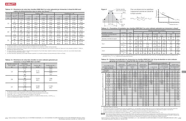 Tableau 14 – Paramètres d ' installation des chevilles KWIK Bolt 3 en acier ordinaire galvanisé par immersion à chaud 1