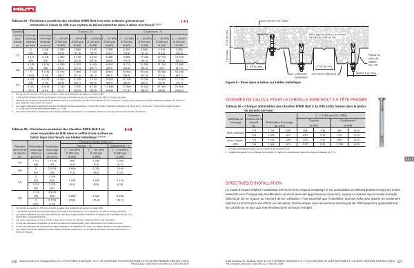 = 3 000 psi ( 20,7 MPa ) Traction Cisaillement 2 lb ( kN ) lb ( kN ) 1 / 4 1 1 / 8 ( 29 ) 365 ( 1,6 ) 350 ( 1,6 ) 3 / 8 1 5 / 8 ( 41 ) 810 ( 3,6 ) 750 ( 3,3 ) 1 / 4 1 1 / 8 ( 29 ) 320 ( 1,4 ) 500 ( 2,2 ) 3 / 8 1 5 / 8 ( 41 ) 670 ( 3,0 ) 1 330 ( 5,9 )
