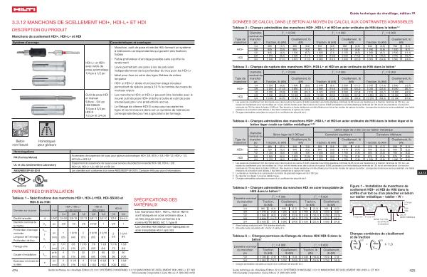 424 Guide technique du chevillage Édition 22 | 3.0 SYSTÈMES D ’ ANCRAGE | 3.3.12 MANCHONS DE SCELLEMENT HDI +/ HDI-L + ET HDI Hilti ( Canada ) Corporation | www . hilti . ca | 1-800-363-4458