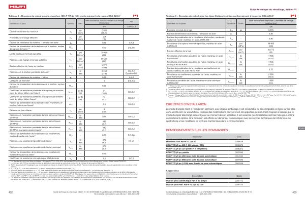 Le mode d ' emploi relatif à l ' installation est fourni avec chaque emballage . Il est consultable ou téléchargeable en ligne sur les sites www . us . hilti . com ou www . hilti . ca . Puisque des modifications peuvent avoir été apportées au document , toujours s ' assurer que le mode d ' emploi téléchargé est en vigueur au moment de son utilisation . Il est essentiel que l ' installation soit bien faite pour obtenir un rendement optimal . Une formation est offerte sur demande . Communiquer avec les services techniques de Hilti lorsque les applications et les conditions ne sont pas mentionnées dans le mode d ' emploi .
