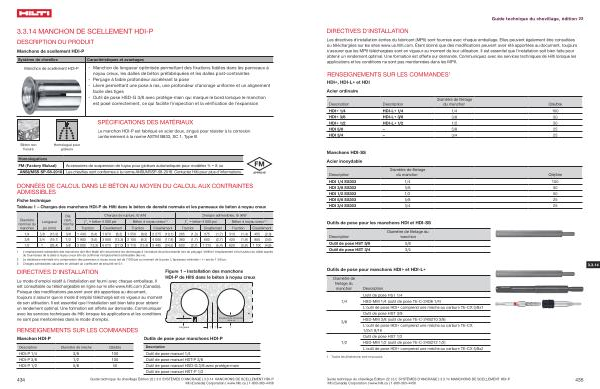 434 Guide technique du chevillage Édition 22 | 3.0 SYSTÈMES D ’ ANCRAGE | 3.3.14 MANCHONS DE SCELLEMENT HDI-P Hilti ( Canada ) Corporation | www . hilti . ca | 1-800-363-4458
