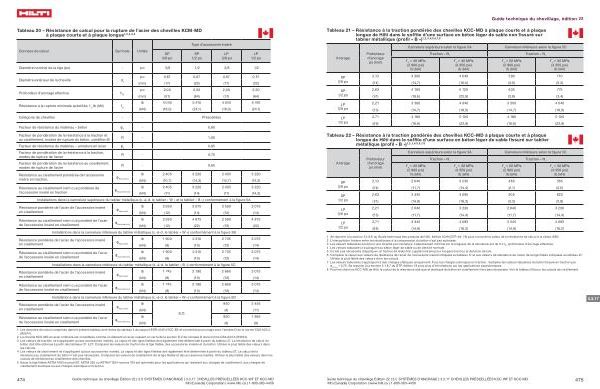 474 Guide technique du chevillage Édition 22 | 3.0 SYSTÈMES D ’ ANCRAGE | 3.3.17 CHEVILLES PRÉSCELLÉES KCC-WF ET KCC-MD Hilti ( Canada ) Corporation | www . hilti . ca | 1-800-363-4458