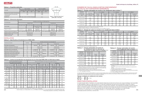 484 Guide technique du chevillage Édition 22 | 3.0 SYSTÈMES D ’ ANCRAGE | 3.3.19 VIS POUR BÉTON ET MAÇONNERIE KWIK-CON + Hilti ( Canada ) Corporation | www . hilti . ca | 1-800-363-4458