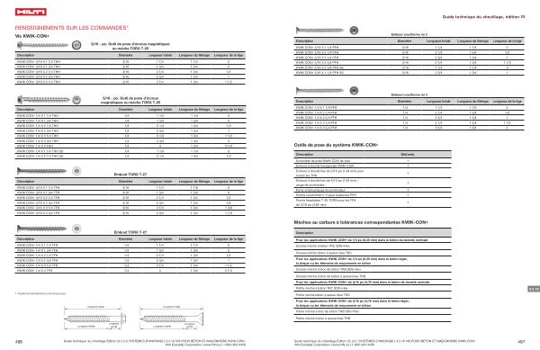 Guide technique du chevillage Édition 22 | 3.0 SYSTÈMES D ’ ANCRAGE | 3.3.19 VIS POUR BÉTON ET MAÇONNERIE KWIK-CON + Hilti ( Canada ) Corporation | www . hilti . ca | 1-800-363-4458