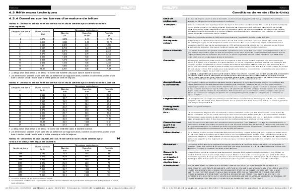 420 Hilti, Inc. (U.S.) 1-800-879-8000 | www.hilti.com I en español 1-800-879-5000 I Hilti (Canada) Corp. 1-800-363-4458 I www.hilti.com I Guide technique du chevillage, édition 17