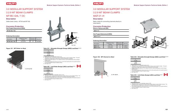 ( LRFD ) values . 4 . The design professional must account for moment decoupling when the applied loads do not occur between the pair of beam clamps . 5 . See Figure 102 .