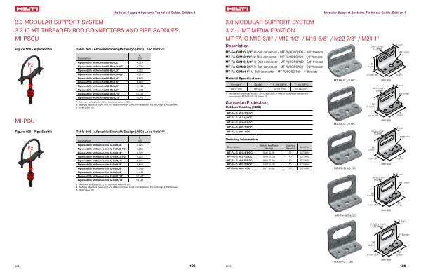 3.0 MODULAR SUPPORT SYSTEM 3.2.10 MT THREADED ROD CONNECTORS AND PIPE SADDLES MI-PSCU