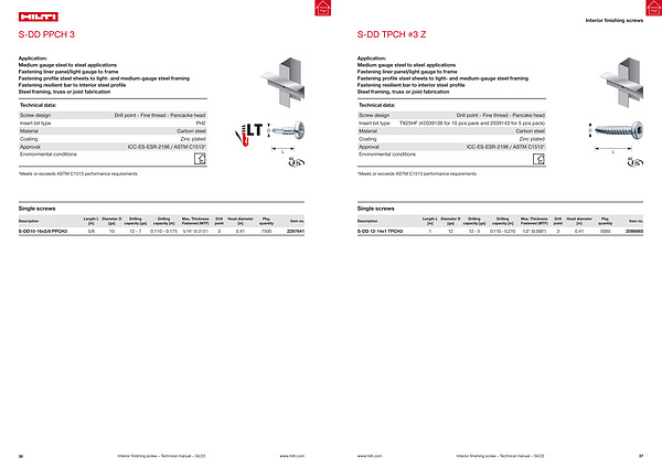 36 Interior finishing screw – Technical manual – 04 / 22 www . hilti . com