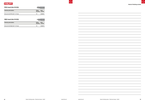 Interior finishing screws www . hilti . com Interior finishing screw – Technical manual – 04 / 22 59