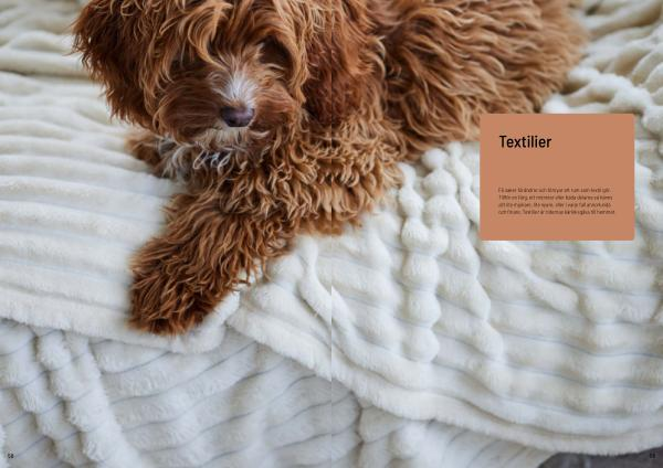 Få saker förändrar och förnyar ett rum som textil gör . Tillför en färg , ett mönster eller båda delarna så känns allt lite mjukare , lite nyare , eller i varje fall annorlunda och finare . Textilier är tidernas kärleksgåva till hemmet .