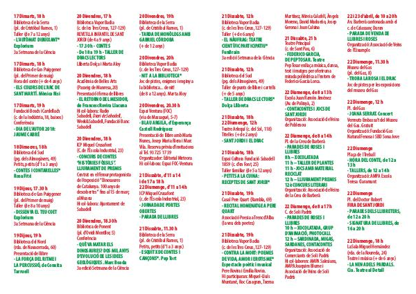 22 i 23 d’ abril, de 10 a 20 h Av. Barberà cantonada amb el c. de Calassanç Duran