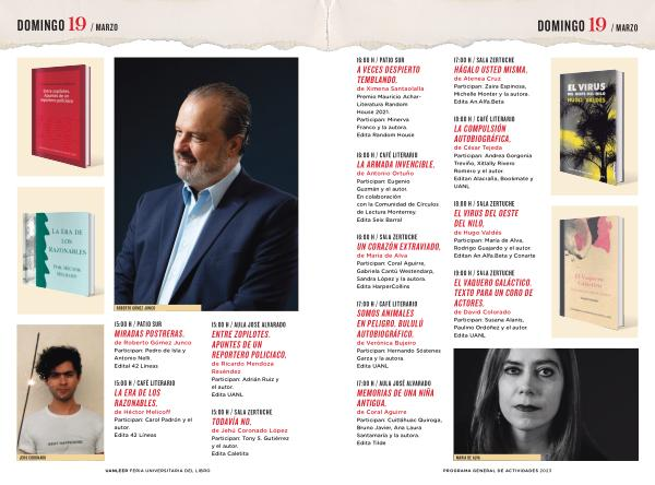 de César Tejeda Participan : Andrea Gorgonia Treviño , Xitlally Rivero Romero y el autor . Editan Alacraña , Bookmate y UANL