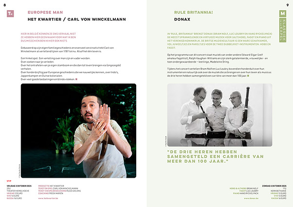 Tijdens het concert vertellen Bram Nolf en Luc Loubry bovendien honderduit over hun instrumenten en natuurlijk ook over de muziek die ze brengen en over hun leven als musicus: de drie heren hebben samengeteld een carrière van meer dan 100 jaar.
