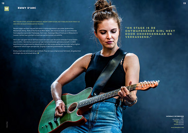 Het is dan ook geen toeval dat haar naam een ode is aan de onverzettelijke Franse heldin Jeanne d’ Arc. Dat merk je wanneer je haar indrukwekkende optredens beleeft. In 2025 komt Emmy’ s langverwachte debuutalbum uit. Alle songs werden geschreven, behartigd en uitgewerkt vanuit eigen perspectief. Ze ging in zee met grootmeester Jean Blaute.