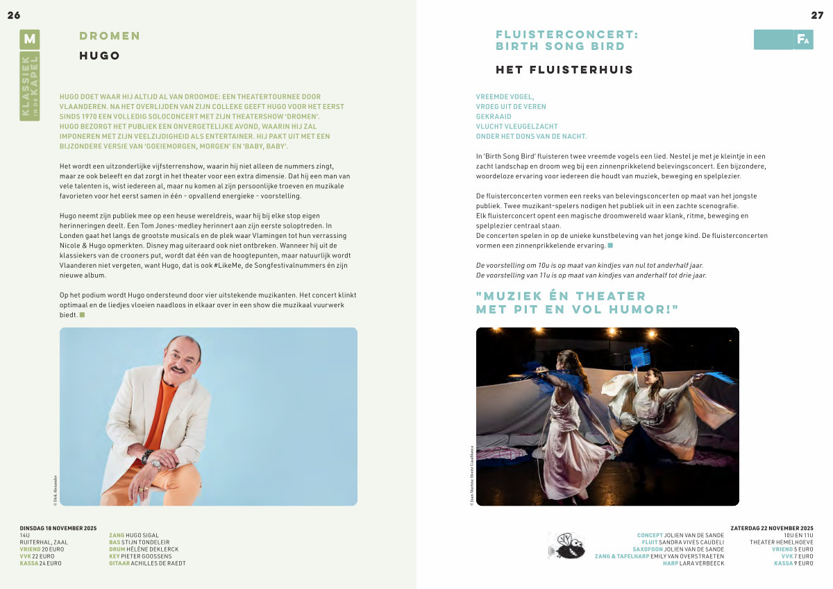 DINSDAG 18 NOVEMBER 2025 14U RUITERHAL, ZAAL VRIEND 20 EURO VVK 22 EURO KASSA 24 EURO