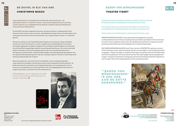 Met‘ BARON VON MÜNCHHAUSEN’ kiest Tieret, net als in‘ RASPOETIN’, opnieuw voor een historische figuur wiens naam en faam de realiteit ver overstijgen. In een nostalgische sfeer vol poppen, vrolijke muziekjes en straffe verhalen gaan we op zoek naar de man achter deze mythische Leugenbaron. Wie was toch de man die naar eigen zeggen op kanonskogels kon vliegen, reed op een half paard en hongerige wolven binnenstebuiten keerde? U gelooft uw oren en ogen niet en dat is ongetwijfeld een heel wijze beslissing!